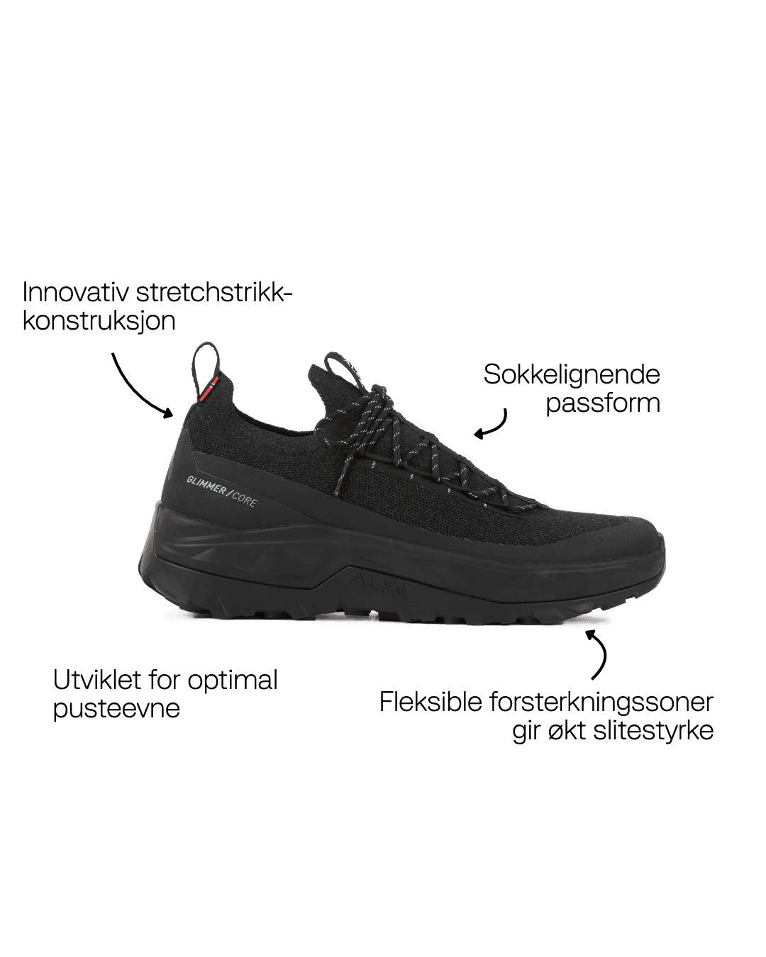 Glimmer kombinerer en innovativ strikket overdel med slitesterk, lett og pustende konstruksjon for enestående komfort og ytelse.
